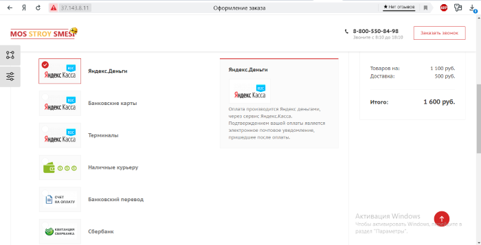 Оплату можно произвести разными способами, как наличными курьеру, так и онлайн при оформлении. Обо всех способах оплаты можно ознакомиться в разделе Условия оплаты.